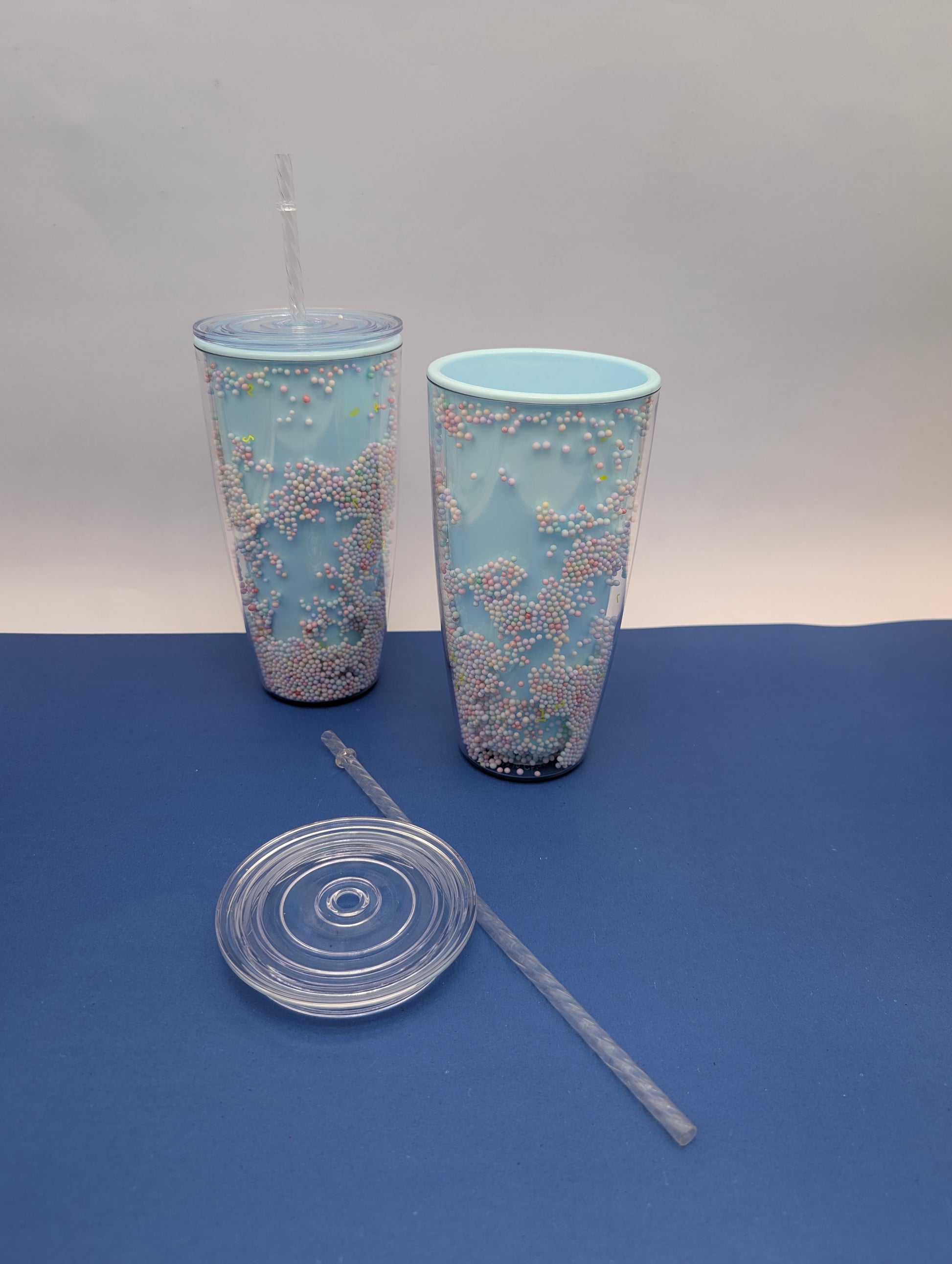 Whimsical Sprinkle Design: Playful pastel beads move inside the double walls for a dreamy effect.