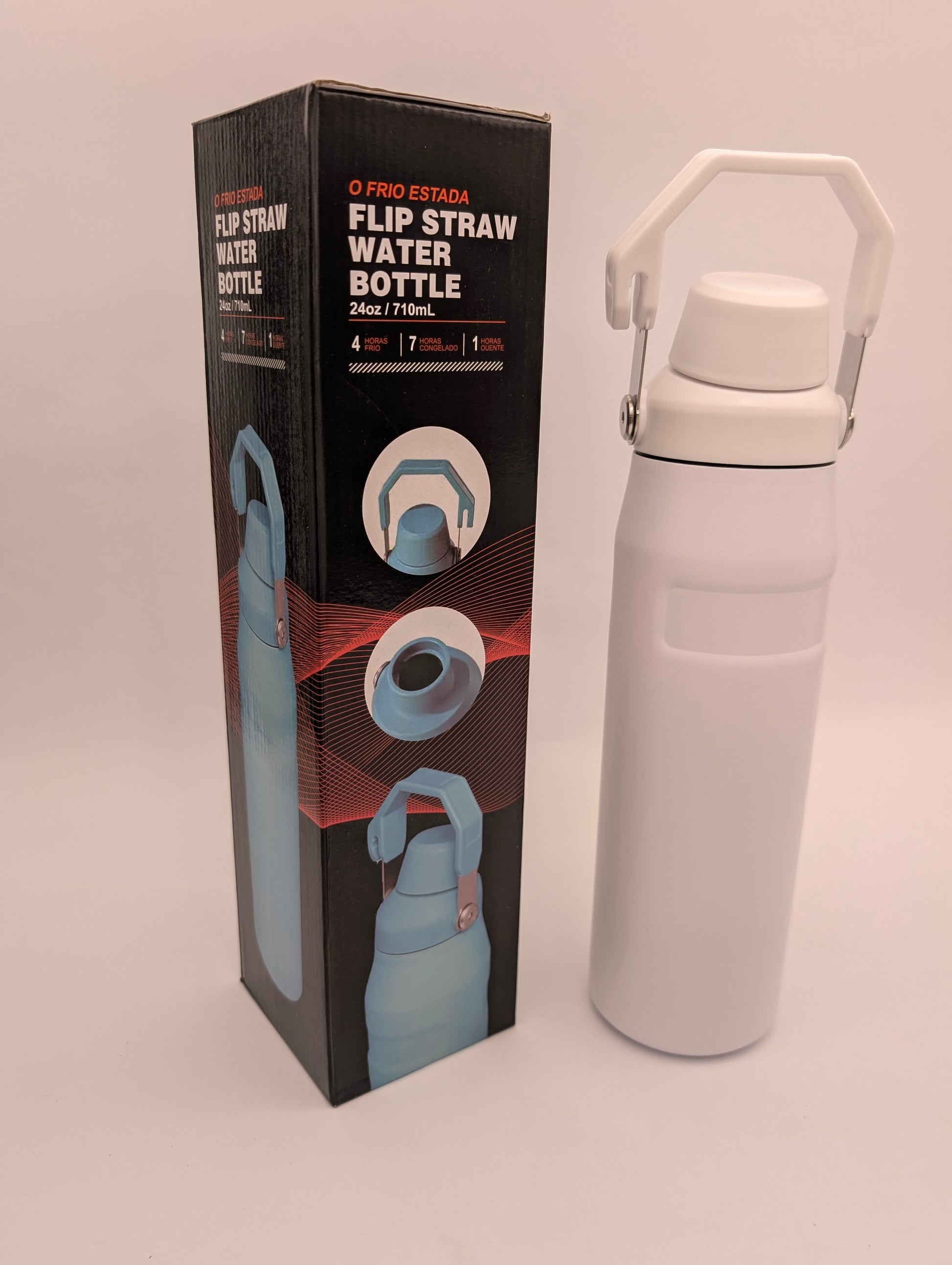 These are insulated stainless steel bottles with a unique handle that folds flat, making them highly portable. π§π