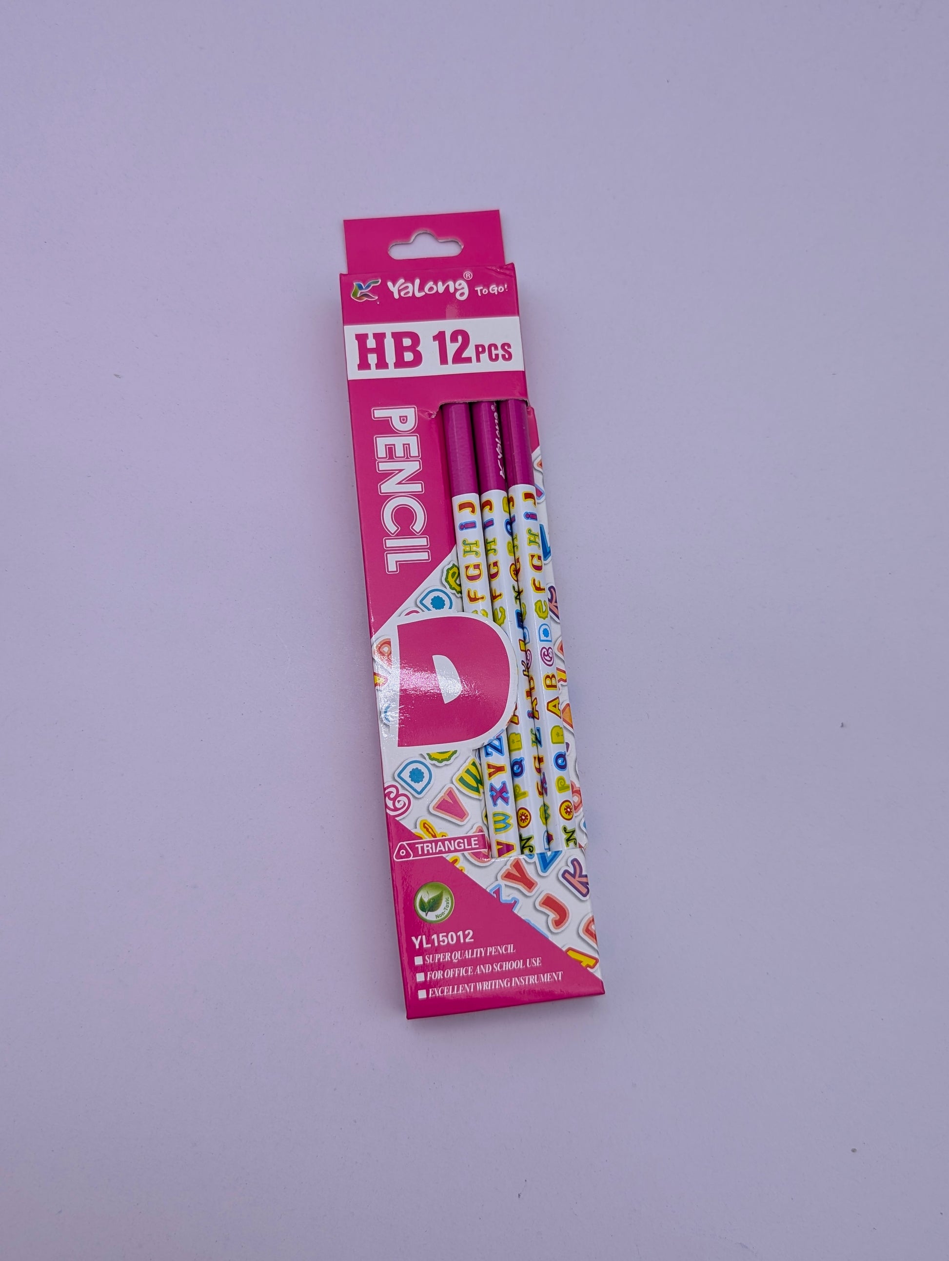 Brightly designed HB pencils featuring playful alphabet patterns.